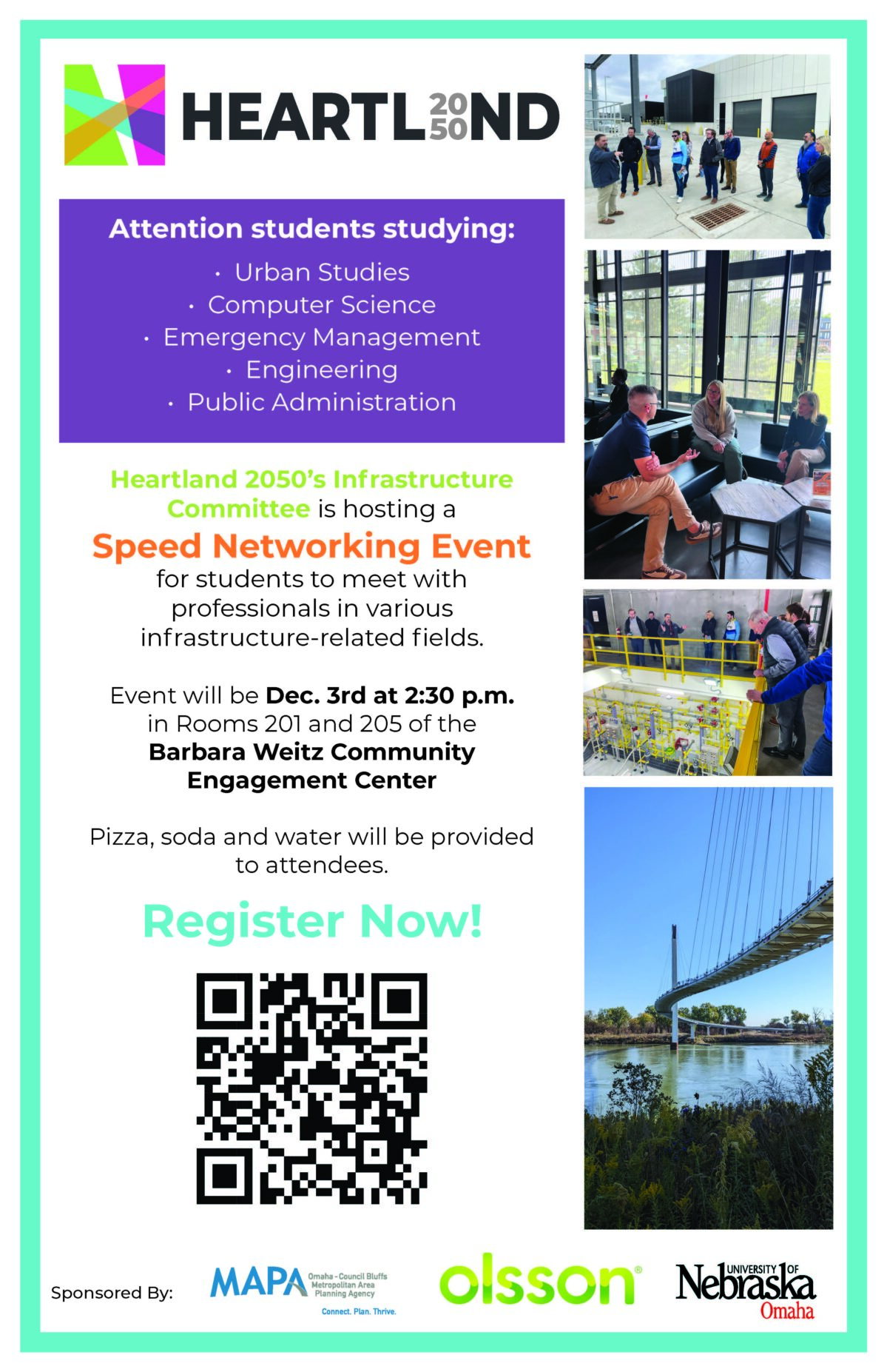 Heartland 2050’s Infrastructure Committee is hosting a speed networking event for UNO students to meet with professionals in various infrastructure-related fields.